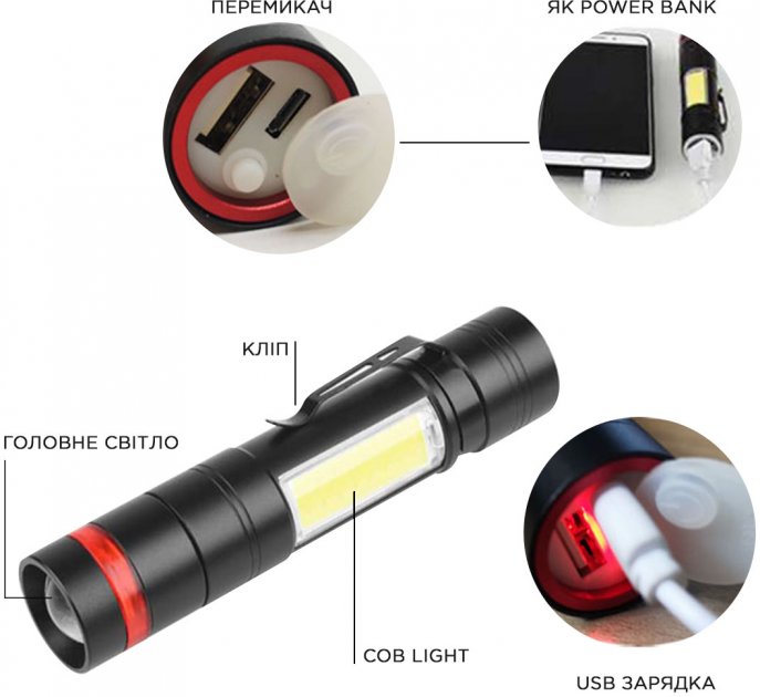 Ліхтар QUANTUM Assistant 3W LED+COB з USB з функцією Power Bank QUANTUM QMFL1030
