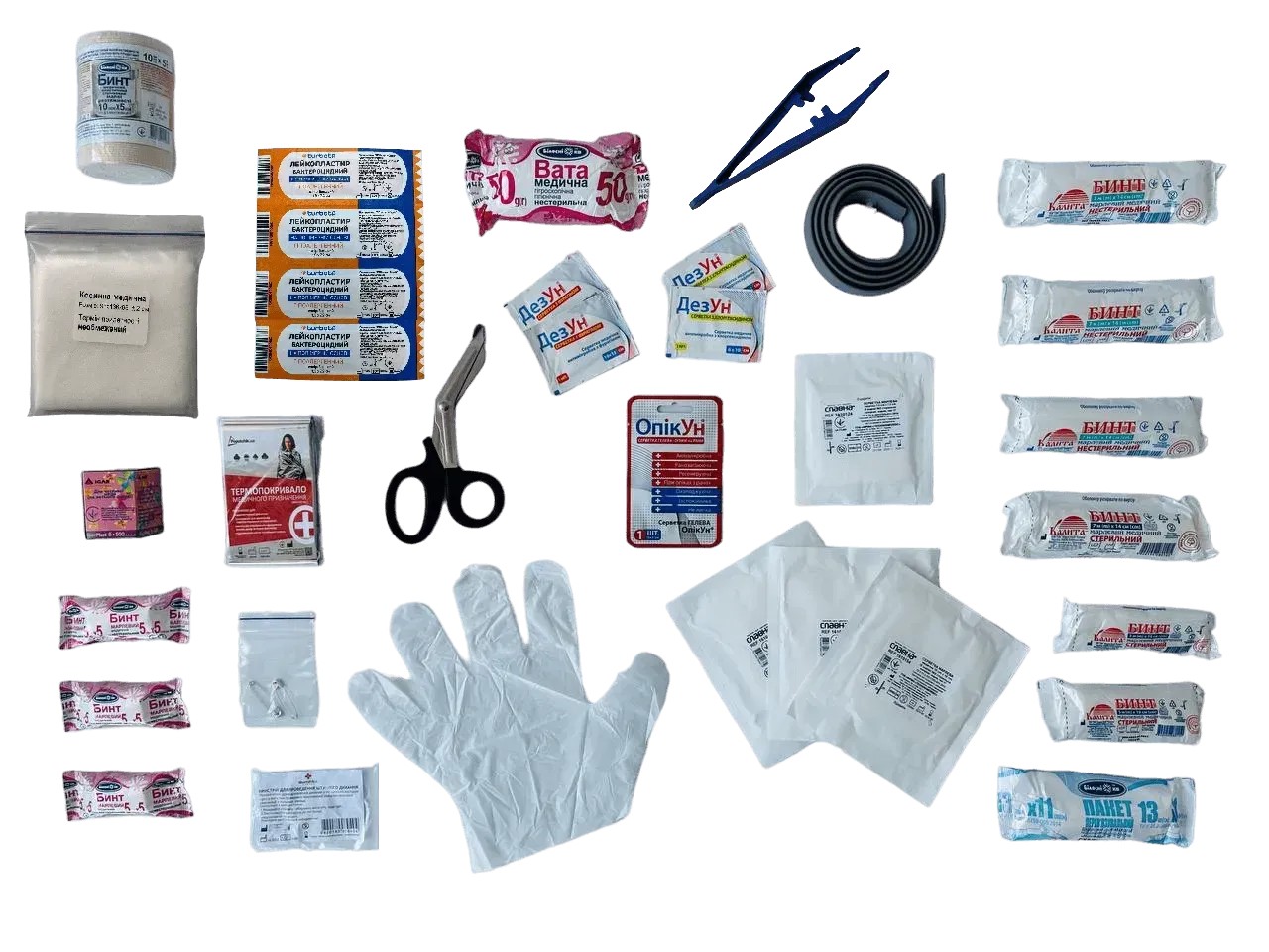 - Пакет перев'язувальний стерильний (13 см х 11 см) - 1 шт