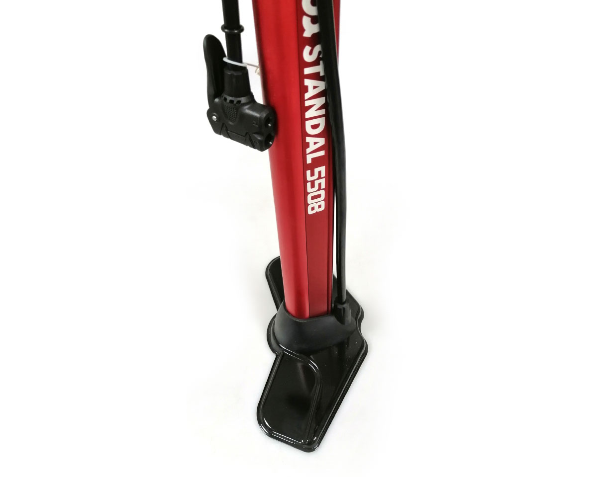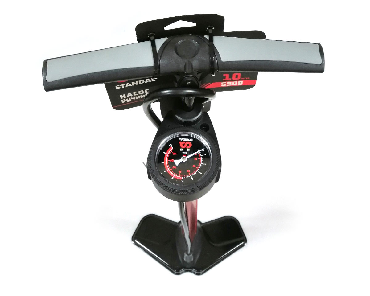 Ручний насос STD 5508, TM Standal – незамінний пристрій для вашого транспортного засобу, а також для вашого дому. За допомогою цього насоса можна дуже легко накачати повітрям різноманітні шини, включаючи автомобільну, або велосипедну шину, гумовий човен, або звичайний футбольний дитячий м'яч. Найважливіший показник – це нормальний тиск у шинах, який забезпечить водієві безпечну та зручну поїздку. Для безпечної їзди на транспорті рекомендується постійно перевіряти тиск у шинах, що також дозволяє запобігти передчасному зношенню шин, покращити зчеплення з дорогою, зменшити витрату палива. Насоси поділяють на однопоршневі та двопоршневі. Наявність другого поршня істотно впливає на швидкість накачування і продуктивність насоса. Цей однопоршневий ручний насос моделі STD 5508 впорається з усіма необхідними завданнями. Корпус виконаний з високоякісного та міцного металу, що забезпечить тривалий термін використання. Розмір циліндра становить 32 мм х 600 мм, дозволяючи нагнітати великий об'єм повітря за один цикл. Насос укомплектований міцним гумовим шлангом, який легко кріпитися та знімається з вентиля колеса. Даний насос призначений для велосипедів, автомобілів, та човнів. Максимальний тиск даної моделі складає 10 АТМ. В даній моделі присутній манометр.