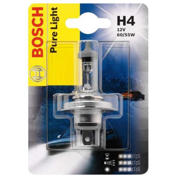 Автолампа галогенна BOSCH H4 12В (1987301001) PURE LIGHT